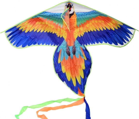 Denne store drage formet som en ara-papegøje er et fremragende valg til familieture i parken, på stranden eller engen. Den lette konstruktion løfter hurtigt i vinden, og flyvningen er stabil takket være den lange hale med bånd, som forbedrer balancen i luften.