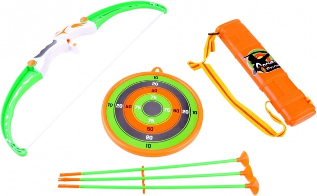 Sjovt og sikkert bueskydningssæt til børn indeholder bue, ophængelig målskive, 3 pile med sugekop og kogger. De bløde sugekopper gør legen sikker selv indendørs, og de klare farver samt nem brug understøtter præcision, koordination og tålmodighed.