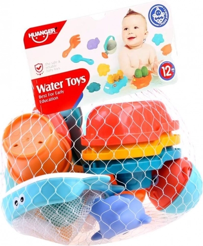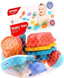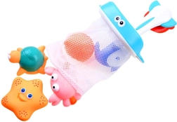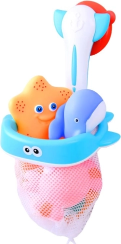 Gør badetiden til en fest! Dette fyldige vandlegesæt indeholder et net med sugekop, både, stablekopper, klapbare kugler og flydende gummidyr. De livlige farver og de mange aktiviteter understøtter finmotorik, hånd-øje-koordination og kreativ leg i vand. Den praktiske sugekop forvandler nettet til en legetøjsorganizer, så badeværelset altid er pænt og ryddeligt.