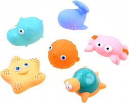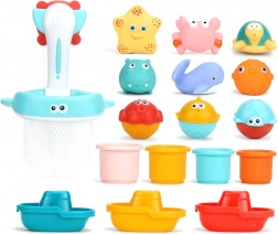 Sættet byder på mange måder at underholde børn under badet: fang flydende legetøj med nettet, byg og hæld vand med kopperne, opdag gemmesteder i de klapbare kugler, og lad gummidyrene sprøjte vand som små fontæner. Takket være plast og gummi af høj kvalitet er legetøjet let, sikkert og ideelt til vand.