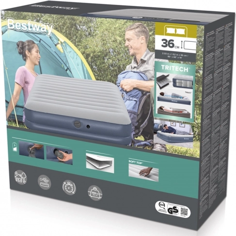 Nyd en behagelig søvn i haven, stuen eller teltet. Den oppustelige madras BESTWAY Tritech Queen (203 × 152 × 36 cm) kombinerer en solid konstruktion, en behagelig overflade og praktisk teknologi for ubesværet oppustning og tømning. Det holdbare Tritech-materiale bevarer formen, synker ikke og er ideelt til regelmæssig brug.