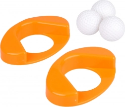 Tre lette plastkøller, tre bolde og to huller med base giver alt, hvad der behøves til minigolf både hjemme og udendørs.