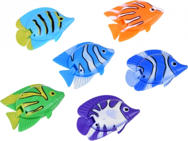 Der medfølger seks lette fisk i forskellige farver – ideelle til at lære farver og øve reaktionsevne.