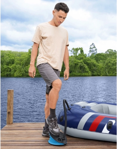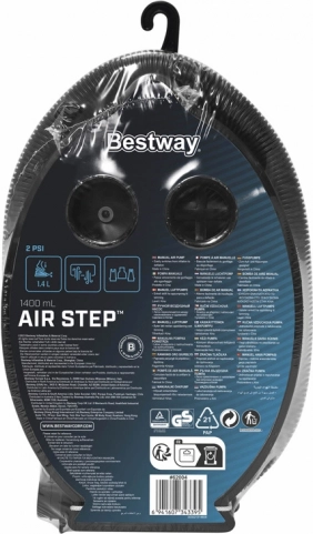 Den kompakte fodpumpe BESTWAY Air Step 1400 er ideel både på ferie og derhjemme. Takket være 3 udskiftelige mundstykker er den kompatibel med de fleste oppustelige produkter – fra madrasser og stole til baderinge og børnepools. Den tilbyder kapacitet på 1,4 l pr. cyklus, mulighed for oppustning og tømning samt et let og nemt transportabelt design.