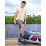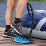 Skift nemt mellem INFLATE/DEFLATE, så du ikke bare fylder luft på, men også hurtigt lukker den ud. Pumpen kan betjenes med fod eller hånd – fodbetjening er komfortabel og hurtig, hvilket værdsættes på stranden, ved søen og i haven.