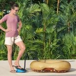 Stabil trædeflade og fleksibel slange gør den nem at bruge på broen, stranden og i haven – hænderne forbliver frie.