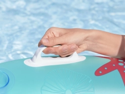 Den oppustelige ring med et smukt koralrev-motiv imponerer med sit design og sine farver og tiltrækker alle, der elsker afslapning på vandet. To solide håndtag gør ind- og udstigning lettere, mens den indbyggede kopholder gør det bekvemt at nyde en forfriskning uden at afbryde afslapningen.