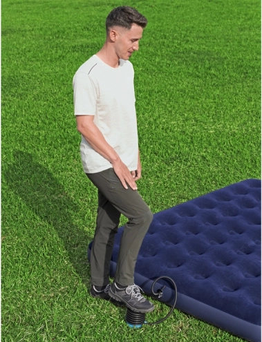 Fodpumpe Bestway er den perfekte hjælper til dine udendørs eventyr eller hjemmebrug. Takket være sin kompakthed passer den let i enhver bagage, selv i en håndtaske. Meget effektiv i både op- og nedadgående bevægelser, hvilket sikrer hurtig og bekvem oppustning.