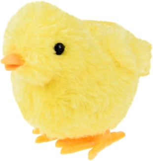 Efter at være trukket op bevæger kyllingen sig fremad med rytmiske trin, hvilket fascinerer og underholder børn.