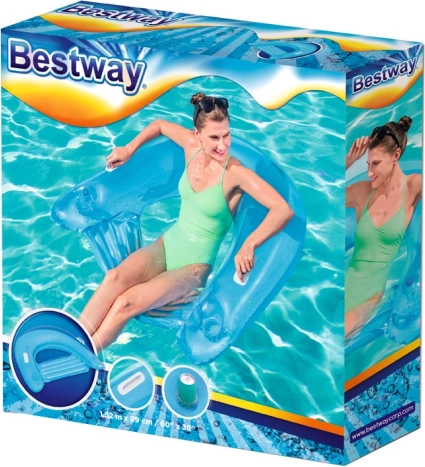 Stor, komfortabel oppustelig stol til afslappende stunder i vandet vil være nyttig til enhver ferie, ved vandet. Stolen er meget velformet med ryglæn. Den har to håndgreb og plads til kolde drikke. Det komfortable sæde kan belastes med maksimalt 90 kg. Kan bruges både til svømning og afslapning. Madrassen er lavet af PVC-plast. Sædet er komfortabelt formet og giver konstant kontakt med vandet. Ved skade på den oppustelige del medfølger et reparationspatch. Sædet har en luftkammer, som er desuden beskyttet mod luftlækage i det ydre miljø.