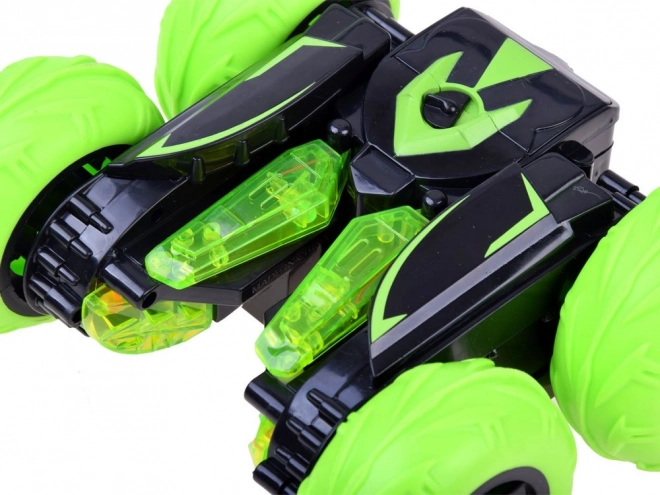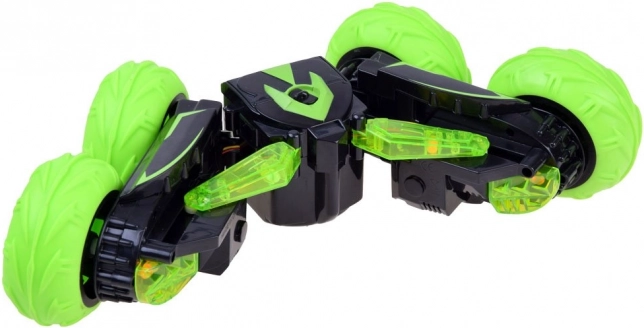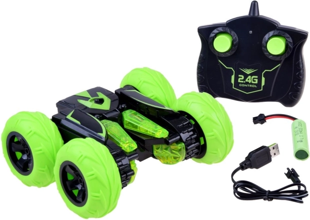 Køretøjet kan udføre forskellige stunttricks, så man ikke hurtigt bliver træt af at lege med den. Den er lavet af materialer af højeste kvalitet med store gummihjul, der ikke frygter nogen forhindring. Når den støder på en forhindring, kan den dreje 180° og fortsætte kørslen. Det hele suppleres af farverige blinkende lys, der lyser under kørsel. <\/span><\/p>