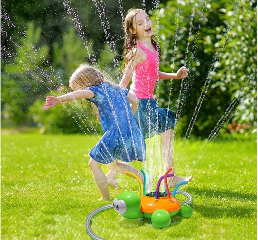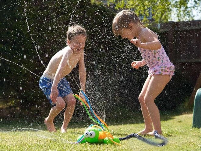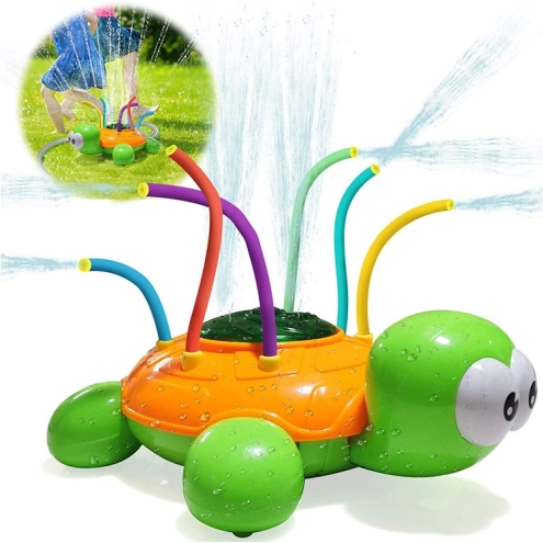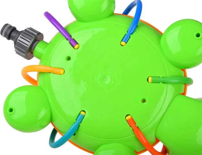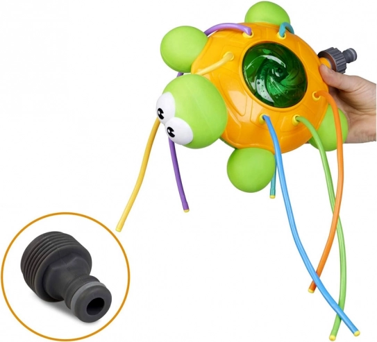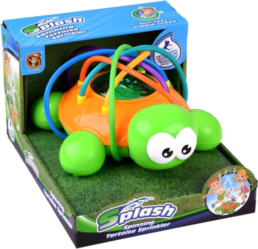 Grøn og orange skildpadde med farverige, fleksible sprayrør giver masser af sjov på en varm dag. Springvandet, der opstår, når en almindelig havevandslange tilsluttes skildpadden, giver masser af latter, bevægelse og herlig underholdning. Sprederen er let at installere og kan tilsluttes uafhængigt til enhver standard havevandslange og vandhane; ved at justere vandtrykket på hanen sikrer du en kraftigere eller blidere spray.