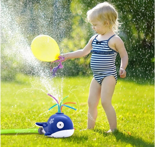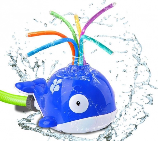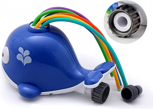 Den søde blå hval med farvede, elastiske rør spreder vand i alle retninger og skaber en forfriskende fontæne. Børn får aktiv udendørs leg og behagelig afkøling på hede dage. Tilslutningen er enkel – kompatibel med en almindelig haveslange, og vandstrømmen justeres nemt direkte på hanen.