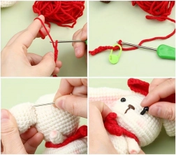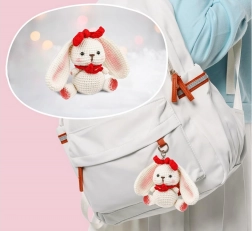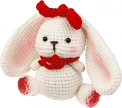 Lav en blød lille kanin med hvidt, rødt og brunt garn – en ideel gave og pynt til børneværelset.