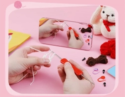 Dette originale DIY-sæt gør det nemt at hækle din egen legetøjsfigur – en hvid kanin med røde detaljer. Takket være den overskuelige, illustrerede vejledning og QR‑kode til video kan selv helt nybegyndere følge processen. Den færdige kanin er en skøn gave og en hyggelig dekoration til børneværelset.