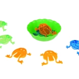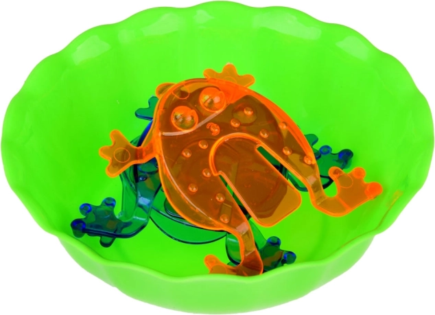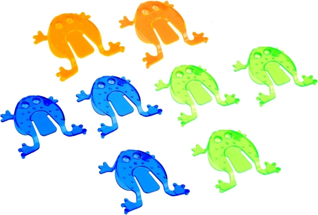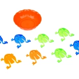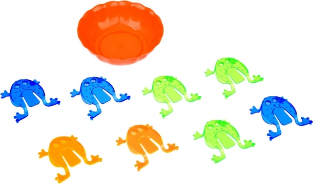 De farverige plastfrøer kan nemt affyres med en finger og sendes direkte i skålen. Ideelt til hurtige konkurrencer og træning af fingerfærdighed.