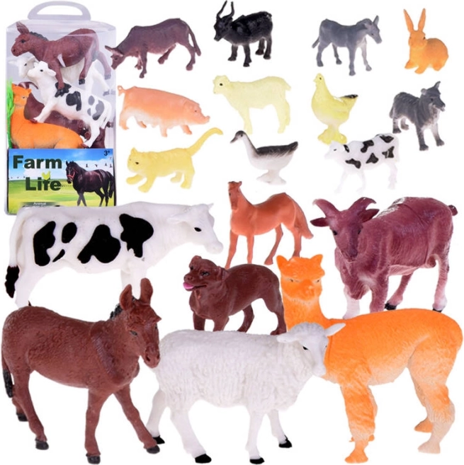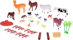 Ko, hest, hund, æsel, får med lam, geder, alpaka, gris, bøffel, kat, kanin, and og høne suppleret med hegn, høballe, stammer, busk og spille-/legeunderlag.