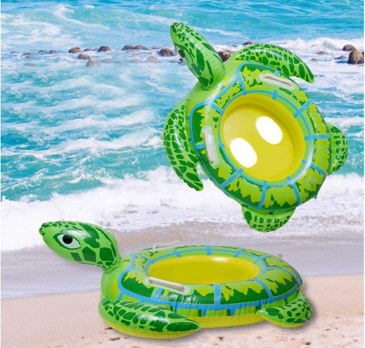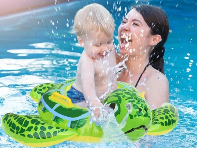 Et sødt oppusteligt svømmehjul i form af en skildpadde, 90 cm langt, ideelt til at lære at færdes i vandet og øve svømning.