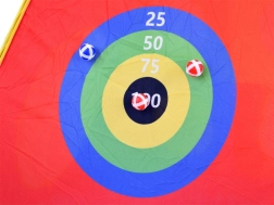 Det trekantede telt med målskive og farvemarkerede huller træner præcision og koordination. Der medfølger 4 bolde med velcro.