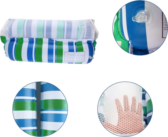 Kombinationen af blå, grøn og hvid gør den både æstetisk tiltalende og funktionel. Det særlige nylonnets net muliggør vandgennemstrømning og øger komforten under brug.