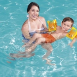 Sjove oppustelige svømmevinger fra Bestway med ananasmotiv hjælper børn med at få selvtillid i vandet. Takket være to uafhængige luftkamre og sikkerhedsventiler er de stabile, sikre og lette at puste op. Den lette konstruktion og de kompakte mål 23 × 15 cm er ideelle til børn 3–6 år.