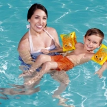 - Kun til brug i vand på dybde, hvor barnet kan nå bunden, altid under opsyn af en voksen