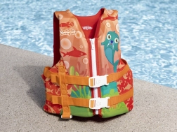 Vesten har tre sikre spænder og en lynlås for nem og fast tilpasning, hvilket giver børnene fri bevægelighed uden begrænsninger. Den kan hurtigt justeres og lukkes, så børnene svømmer komfortabelt, og forældrene kan være trygge ved deres sikkerhed.