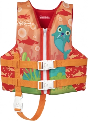 Børne-redningsvesten Puddle Jumper med hvalrosmotiv er beregnet til børn i alderen 3 til 6 år. Denne vest er designet med fokus på børns sikkerhed under vandaktiviteter. Takket være det lette og åndbare Hydroprene™-materiale og de integrerede Crosstech™-skumindlæg sikrer den en problemfri og sikker tid i vandet.