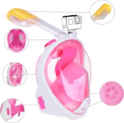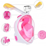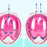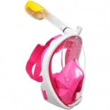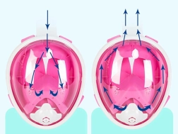 Udforsk undervandsverdenens skønhed uden besvær med denne helmaske til snorkling. Denne innovative maske tilbyder et 180° bredt synsfelt og let vejrtrækning takket være adskilte kanaler til ind- og udånding.