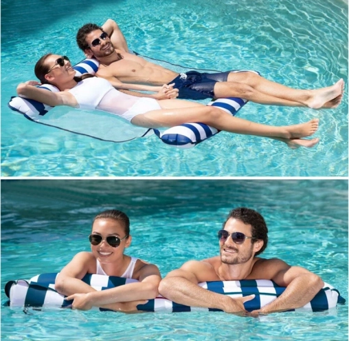 Den oppustelige gyngende vandmadras er det ideelle valg for dem, der søger afslapning og afkøling på vandoverfladen. Takket være dens unikke konstruktion muliggør madrassen delvis nedsænkning, hvilket giver komfort og en kølende effekt især på varme dage.