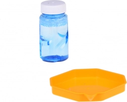 Boblepistolen er en unik maskine til at lave bobler, da den ikke har en indbygget beholder til væske. Så hvordan skaber vi disse smukke regnbuefarvede kugler, der svæver op mod himlen? Det er simpelt! Hæld blot en lille mængde af væsken, der er en del af sættet, i den lyserøde lavvandede skål og dyp pistolens næse i den. Ret derefter og tryk på aftrækkeren. Foran os fremkommer et fantastisk syn! Fra 40 huller vil runde, funklende former flyve af sted og frembringe glade skrig fra mange børn. Og voksne vil også være meget imponerede.