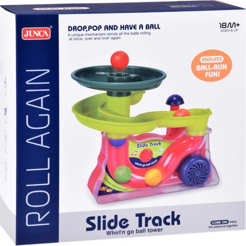 Gennem kombinationen af bevægelse og lyd understøtter denne kuglebane aktivt børns motoriske færdigheder og lærer dem om årsag og virkning.