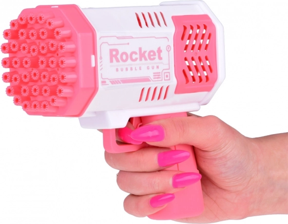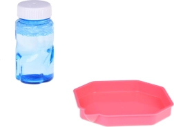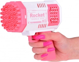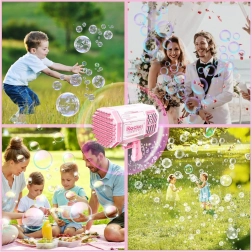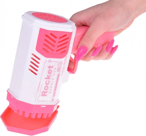 Den unikke boblepistol kræver ingen indbygget væskebeholder. Hvordan skaber du smukke regnbuebobler? Du skal bare hælde en lille mængde af den medfølgende væske i den lyserøde skål og dyppe pistolens forende i den. Så mål og tryk på aftrækkeren. Foran dig vil der dukke et fantastisk syn op - fra 40 huller flyver runde, glitrende former fulde af farver, der glæder enhver tilskuer!