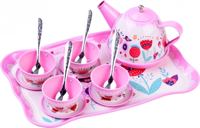 Sættet er som skabt til små værter, der vil servere te for dukker og bamser. Pastelfarver og søde blomstermotiver ser fortryllende ud, mens konstruktionen i metal sikrer lang holdbarhed selv ved daglig leg.