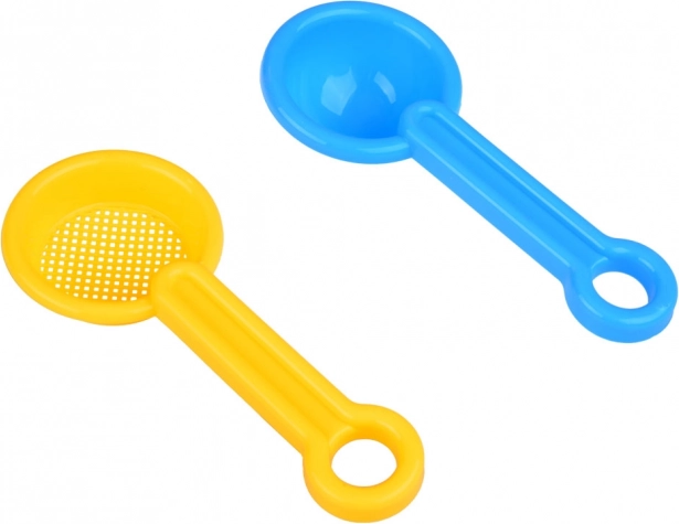 Spand, 2 skovle, rive og si gør det muligt for børn at grave, sigte og forme sand. Ideelt sæt til at bygge sandslotte og kreative udendørslege.