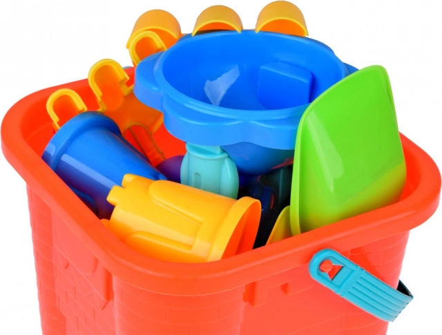 Et farverigt sandlegesæt til små bygmestre rummer alt, hvad der skal til for at skabe borge, tårne og havmotiver. Indeholder spand formet som et slot, to skovle, to river, fem forme og en vand-/sandeturbine. Takket være det behagelige silikonehåndtag er spanden let for børn at bære, og alt kan nemt ryddes op efter legen. Ideelt til strand, legeplads og endda badekarret – til kreativ leg, finmotorik og fantasi.
