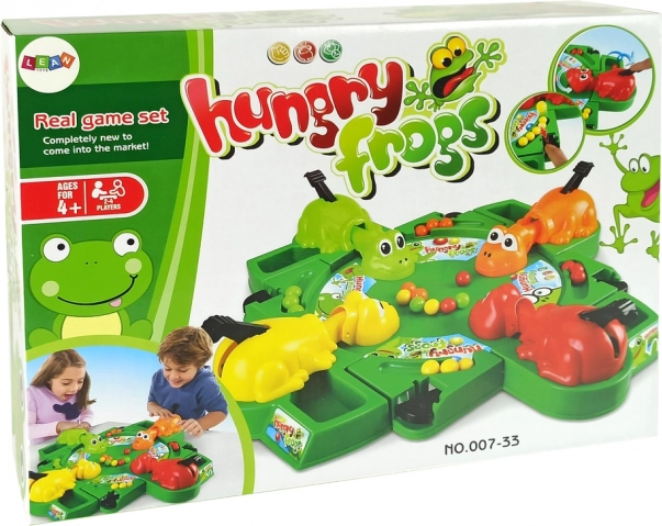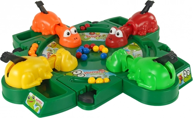 Et underholdende familiespil for 2–4 spillere, hvor I forsøger at fodre jeres frøer med så mange kugler som muligt. Enkel håndtering med en løftestang, hurtige regler og masser af grin garanterer fantastisk sjov for børn fra 3 år. Nemt at samle, og spillet udvikler færdighed, reaktionsevne og konkurrencelyst.