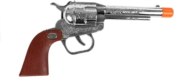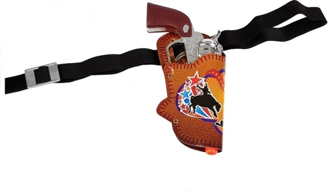 Klassisk revolverlook med detaljeret udførelse og behagelig bæring takket være hylster med bælte. Revolveren måler 19 cm.