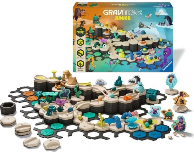 Sættet Startpakke Planet tilbyder baner, der fører gennem fire verdener: jungle, ocean, ørken og frossent landskab. Rige dekorative elementer og dyrefigurer giver mere sjov og fantastiske scenarier. Sættet indeholder 200 forskellige dele, inklusive bundplader, baner, sving, højdeplader, dekorative elementer, dyr og kugler. Med vippen og gyngen kommer din kugle endnu hurtigere og længere!