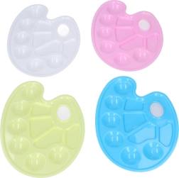 Denne praktiske plastmalerpalette er designet til komfortabel blanding af tempera og andre faste farver. Det lette materiale ligger godt i hånden og er samtidig nemt at rengøre, hvilket gør den ideel til regelmæssig brug i skole, atelier og derhjemme.