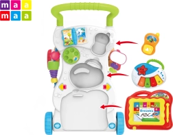 Det interaktive gåstativ og aktivitetscenter 2-i-1 fra MaaMaa støtter de første skridt og barnets alsidige udvikling. Takket være den brede, stabile base, skridsikre hjul og mange farverige aktiviteter – fra læring af farver, former og tal til tegning, klaver og telefon – vil din baby både blive underholdt og udvikle motorik, fantasi og sanser.