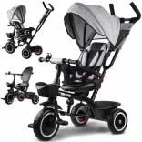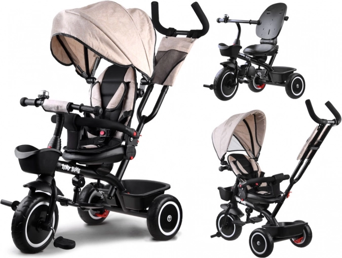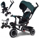 Denne multifunktionelle 3-i-1 trehjuler kombinerer vogn til forældrestyring, komfortabel klapvognstilstand og en selvstændig trehjuler til de første køreture. Et drejeligt sæde gør det muligt at vende mod forælder eller kørselsretning, kalechen med ventilationsnet beskytter mod sol, vind og let regn og sikrer et behageligt klima. 5-punkts seler, en blød aftagelig bøjle og et polstret, letplejet betræk sørger for komfort og sikkerhed.