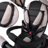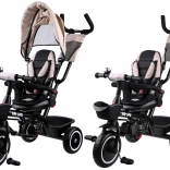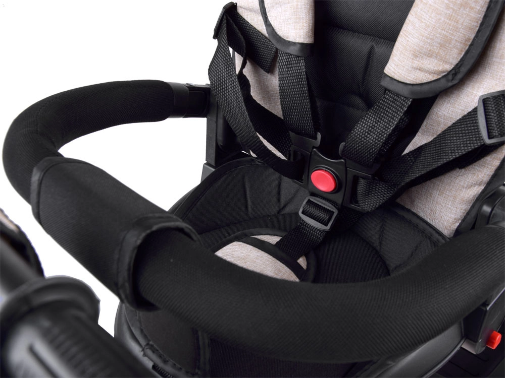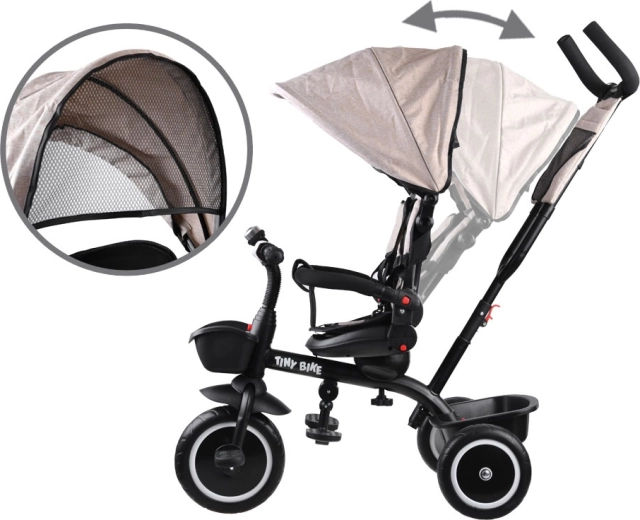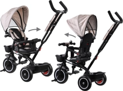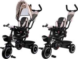 Denne multifunktionelle 3-i-1 trehjuler kombinerer vogn til forældrestyring, komfortabel klapvognstilstand og en selvstændig trehjuler til de første køreture. Et drejeligt sæde gør det muligt at vende mod forælder eller kørselsretning, kalechen med ventilationsnet beskytter mod sol, vind og let regn og sikrer et behageligt klima. 5-punkts seler, en blød aftagelig bøjle og et polstret, letplejet betræk sørger for komfort og sikkerhed.