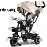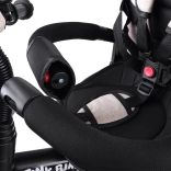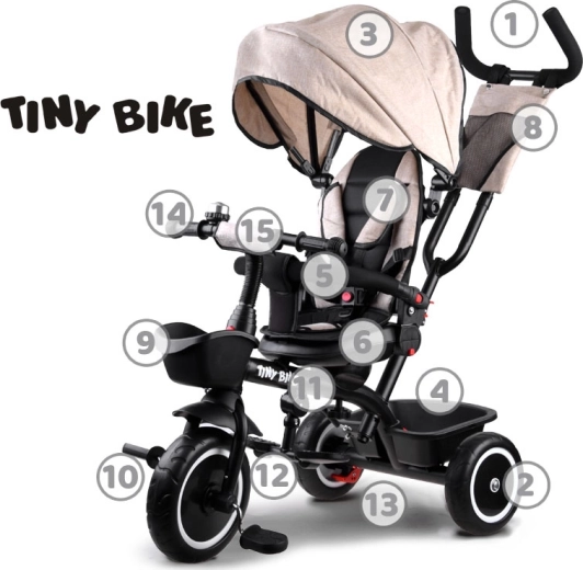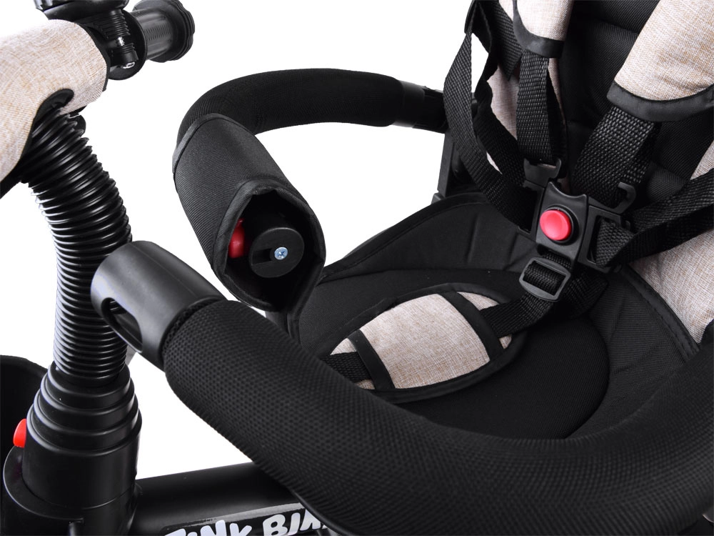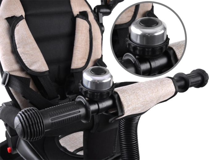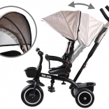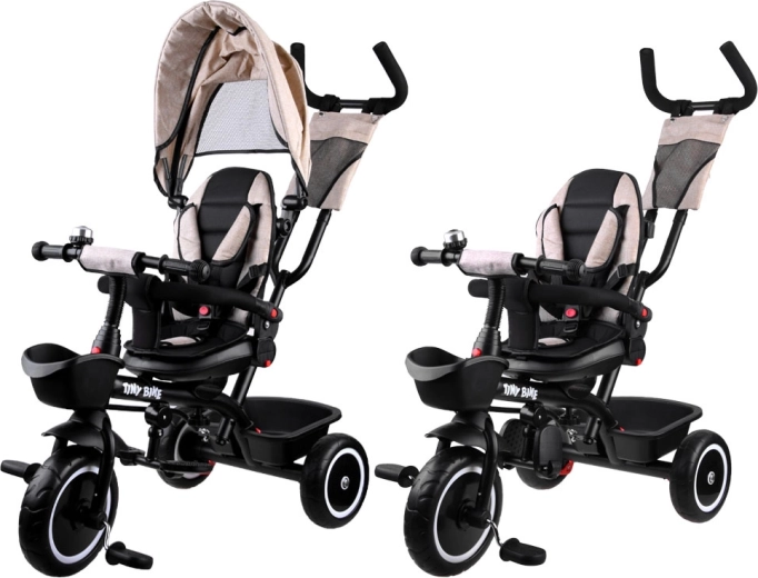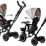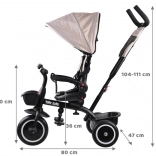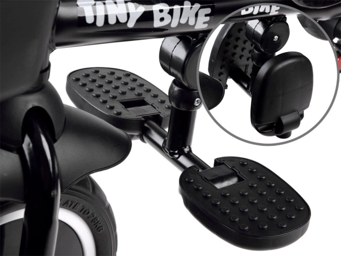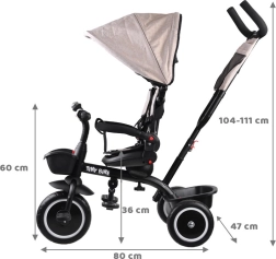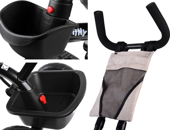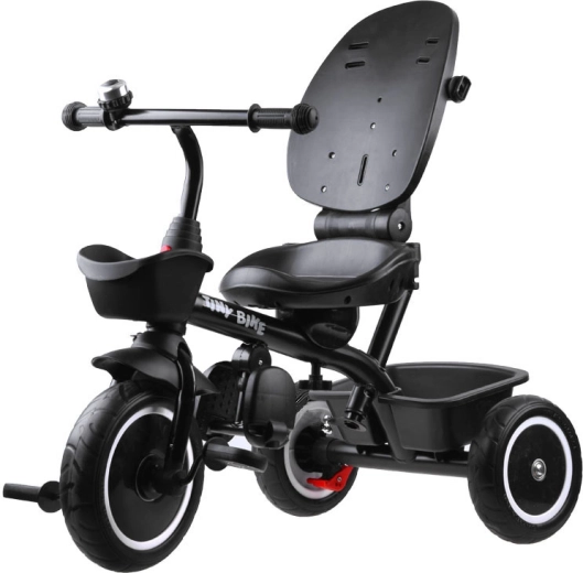 Forældre vil sætte pris på den justerbare styrestang med komfortgreb, de dobbelte parkeringsbremser på baghjulene og de praktiske opbevaringsmuligheder: foran kurv, stor bagkurv samt en lille taske til småting. Hjul af EVA-skum kræver ingen oppumpning og giver en stille og stabil kørsel. Klapbare fodstøtter og pedaler på forhjulet gør det nemt at skifte mellem tilstande, så trehjuleren problemfrit vokser med barnet.