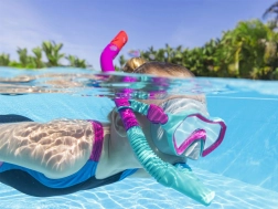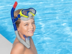 Udforsk pool og hav med Bestway Hydro Swim børnesæt. Takket være ergonomisk design, pålidelig tætning og UV-beskyttede linser er dette sæt ideelt til små begynderdykkere. De klare farver øger synlighed og sikkerhed i vandet.