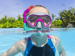 Polycarbonatlinser med UV-belægning beskytter børns øjne mod solen og giver klart syn under vandoverfladen.