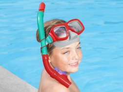 Bestway Hydro Swim snorkelsæt til børn 7+ kombinerer maske og snorkel for komfortabel udforskning af undervandsverdenen. Det tilbyder UV-beskyttelse, et blødt silikone-mundstykke og en justerbar rem for sikker og behagelig pasform.