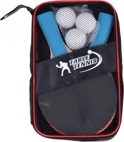 Dette komplette sæt til bordtennis er et godt valg for enhver fan af dette klassiske spil. Det indeholder to træ bats med ergonomisk design, der sikrer komfortabelt greb og nem boldkontrol, samt tre lette plastbolde.