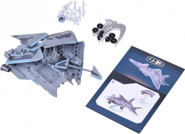 Byggesættet indeholder dele, der gør det muligt at samle en detaljeret J-20-model i autentiske farver og former.
