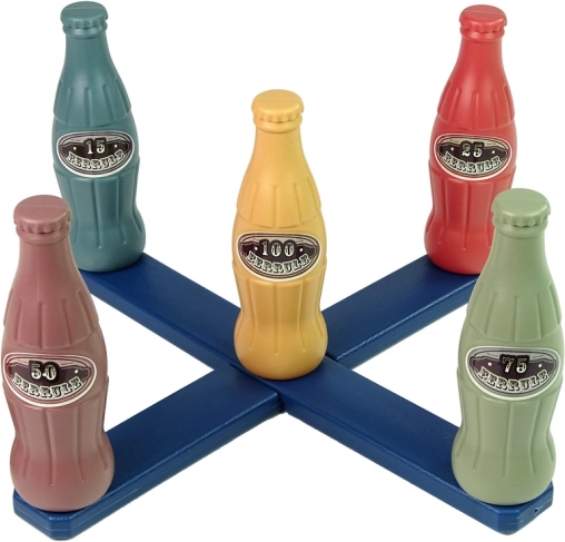 Kastespil med ringe på flasker med pointtælling, 10 dele